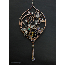 SWAROVSKI CRYSTAL WINDOW SUNCATCHER IN GREEN, BLUE & PEACH WITH MIXED METALS & CZECH GLASS LEAVES