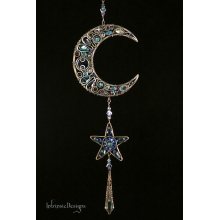 "MOONSTAR" .... MOON & STAR SWAROVSKI CRYSTAL WIRE WRAPPED WINDOW SUNCATCHER