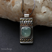 SEAFOAM CHALCEDONY STERLING SILVER & MIXED METAL PENDANT NECKLACE