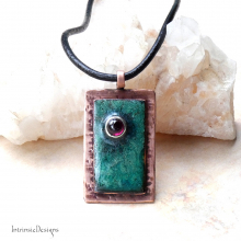 GARNET & ENAMEL OVER COPPER LEATHER NECKLACE