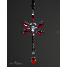 RED DRAGONFLY SWAROVSKI CRYSTAL CAR REARVIEW MIRROR DANGLE .... ADJUSTABLE