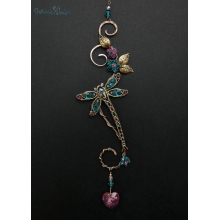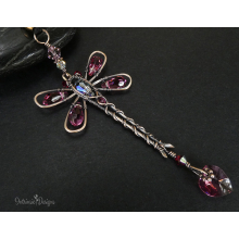 RESERVED FOR PATRICIA .... PURPLE & BLUE DRAGONFLY SWAROVSKI CRYSTAL CAR REAR VIEW MIRROR DANGLE .... ADJUSTABLE
