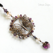 PURPLE BUTTERFLY SWAROVSKI CRYSTAL & AMETHYST WINDOW SUNCATCHER IN MIXED METALS