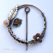 OPAL DOUBLET MIXED METAL CIRCLE BROOCH / SHAWL PIN