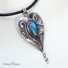 Labradorite Sterling Silver and Bronze Heart Leather Necklace