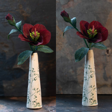 CREPE PAPER HELLEBORE FLOWER IN A HANDMADE VASE