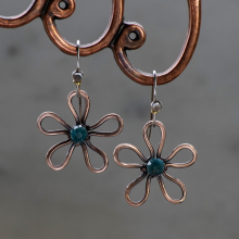 BLUE GREEN APATITE FLOWER DROP EARRINGS IN MIXED METALS WITH 935 ARGENTIUM SILVER EAR WIRES