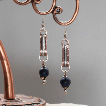LAPIS LAZULI DROP EARRINGS IN MIXED METALS WITH 935 ARGENTIUM SILVER EAR WIRES