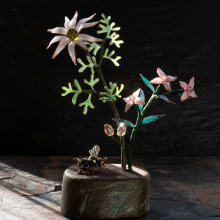 FLANNEL FLOWER & BORONIA AUSTRALIAN NATIVE FLOWERS IN RESIN AND WIRE WITH A BRASS BEE ... WINDOWSILL SUNCATCHER