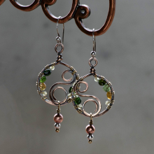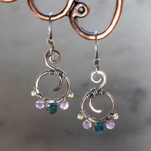 APATITE, FLUORITE & PERIDOT DROP EARRINGS IN MIXED METALS WITH STERLING SILVER EAR WIRES