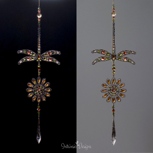 LARGE DRAGONFLY & SUNFLOWER MIXED CRYSTAL SUNCATCHER IN MIXED METALS