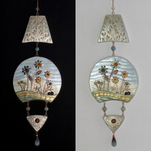 FLORAL LANDSCAPE CLAY WALL HANGING WITH MIXED GEMSTONES AND METALS