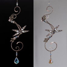 PASTEL DRAGONFLY ON A BRANCH WITH SWAROVSKI CRYSTALS WINDOW SUNCATCHER IN MIXED METALS