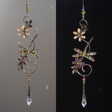 LARGE DRAGONFLY & FLOWER SWAROVSKI & AUSTRIAN CRYSTAL SUNCATCHER IN MIXED METALS