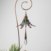 ART DECO STYLE FLORAL CRYSTAL WINDOW SUNCATCHER IN BRONZE AND COPPER