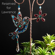 RESERVED FOR LAWRENCE .... HUMMINGBIRD WITH A FLOWER ... DECORATIVE PLANT STAKE CRYSTAL SUNCATCHER