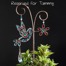 RESERVED FOR TAMMY .... HUMMINGBIRD WITH A FLOWER ... DECORATIVE PLANT STAKE CRYSTAL SUNCATCHER